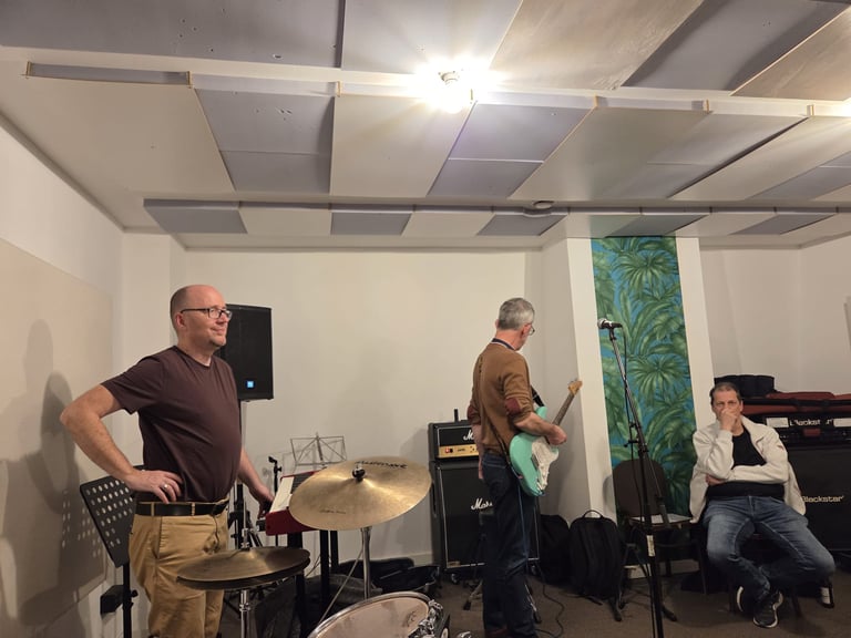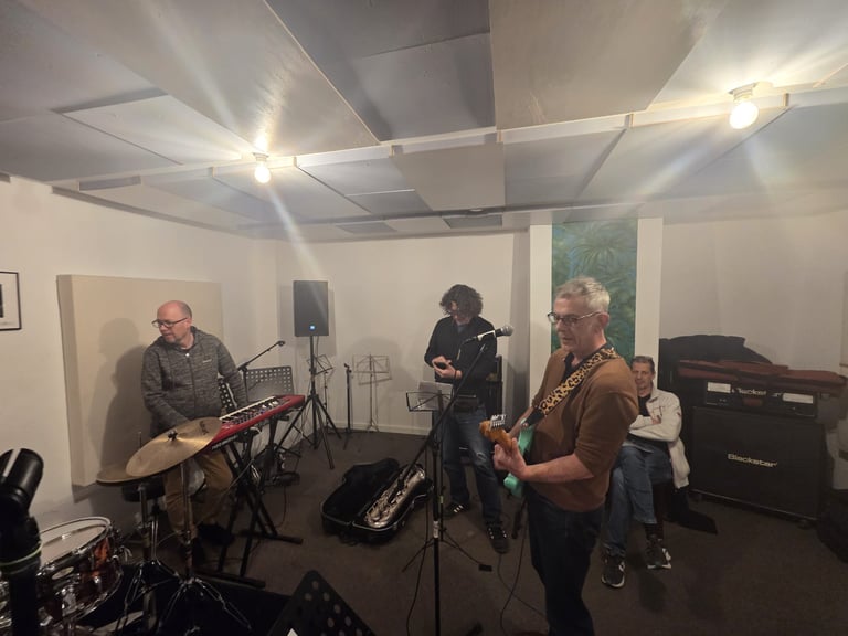 Prüfer: Ein Kern von neun Musikern. Hinzu kommen sogenannte Ersatzspieler, die einspringen wenn andere nicht können. Seit unserer Reunion 2008 versuchen wir, bis zu zwölf Mal im Jahr aufzutreten. Und das schaffen wir eigentlich auch, trotz der ganzen unterschiedlichen Zeitpläne und familiären Verpflichtungen.