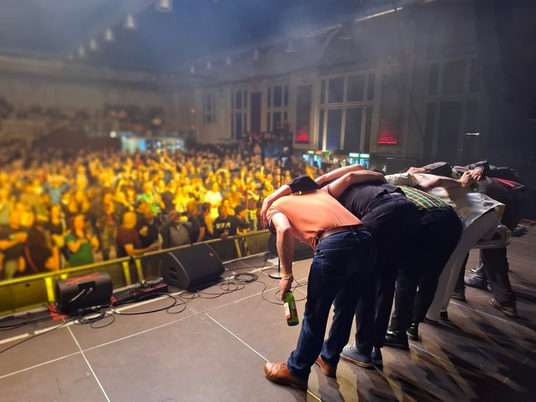 Bonjer: Eine der größten Ska-Bands der 60er Jahre, die Skatalites, ist immer noch auf Tour. Also, wir spielen auf Festivals, wo als Hauptband meistens ein schwarzer 90-Jähriger auftritt, der von seiner Enkeltochter auf die Bühne geführt wird, damit er drei Songs singen kann. Man kann mit Ska altern.