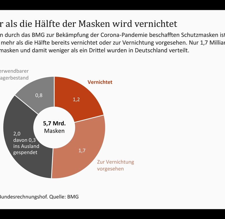 Der Bundesrechnungshof hat festgehalten: Das Bundesgesundheitsministerium beschaffte 5,7 Milliarden Schutzmasken für rund 5,9 Milliarden Euro – weit über Bedarf, mit massiven Folgekosten.